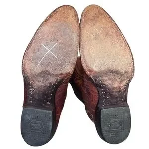 Traditional Western style with decorative, intricate stitching in a lighter thread color on the shaft. They feature pull tabs with lizard overlays to help in putting them on.