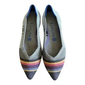Sharp, polished, and sustainably made. These Rothy’s pointed flats feature the brand’s signature knit construction with a multicolor stripe detail at the toe and a sleek pointed silhouette. Lightweight, flexible, and comfortable right out of the box. New without box. Soles show no wear.