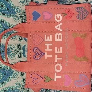 Authentic Marc Jacobs The Tote Bag in GUC size small was originally tan but I dyed it pinkish and added different heart designs. Comes with its crossbody strap.