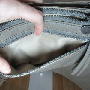 Soft, supple genuine leather in the prettiest neutral grey gives this Lucky Brand crossbody an effortlessly chic feel. Compact yet surprisingly roomy, this little beauty is thoughtfully designed with an adjustable strap, multiple zip compartments and card slots to keep everything neatly organized. The leather has a lovely lived-in texture while remaining in excellent, like-new condition — no stains, no scuffs, just timeless style ready for its next adventure.