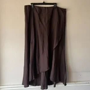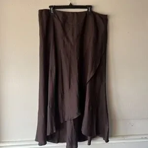 NY Collection Woman Linen Blend Asymmetrical Flowy Lagenlook Brown Skirt 1X