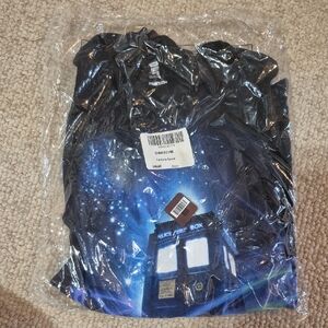 adult small Doctor Who tardis in space graphic t shirt. NWT. unopened in plastic