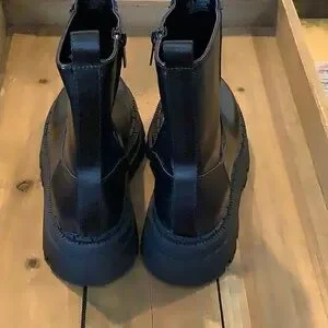 NWOT ZARA Women’s Faux Leather Black Platform Whimsigoth Emo Ankle Boots 38