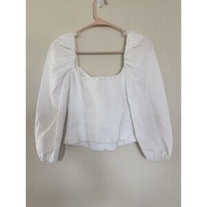 Aritzia Wilfred Woman’s White Puff Sleeve Crop Top Size Small Romantic Peasant