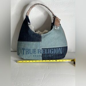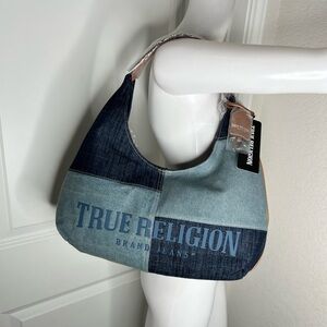 Stylish patchwork design with True Religion branding. Perfect for casual outings. Durable and trendy.