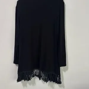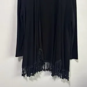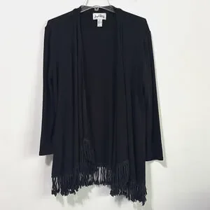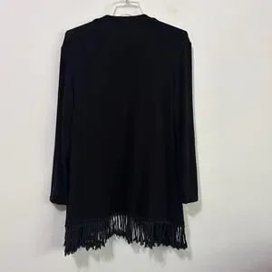 Joseph Ribkoff Fringe Hem Cardigan 14 Black Open Front Long Sleeve Party Dinner