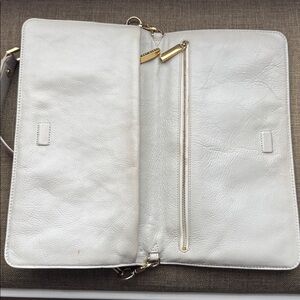 Super soft cream colored leather. Strap is detachable so that you can carry it as a clutch. Good used condition. The hardware is still nice and shiny. Still has lots of life left. Does have some minor wear from normal use.