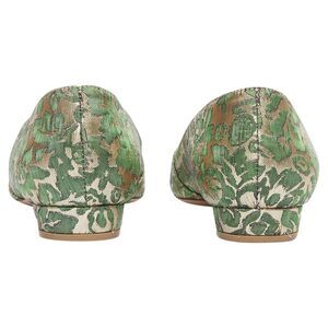 Delivery Duty Paid included – <p>RUPERT SANDERSON Aga green gold brocade embellished pointy flats EU38<br>Reference: SNKO/A00424<br>Brand: Rupert Sanderson<br>Model: Aga<br>Material: Fabric<br>Color: Green, Gold<br>Pattern: Brocade<br>Closure: Slip On<br>Lining: Nude Leather<br>Extra Details: upert Sanderson's 'Aga' flats are made from lustrous gold and green brocade. This pointed pair is embellished with the label's signature pebble - it's inspired by a stone the designer found on a beach in Sri Lanka over 25 years ago. The smooth leather lining and cushioned insole make them a comfortable choice for busy days.<br>Made in: Italy<br><br>CONDITION:<br>Condition: Very good, this item was pre-owned and is in very good condition. Please refer to image gallery for thorough condition check. Slightly scuffed toes and back.<br><br>SIZING<br>Designer size: EU38<br>Size reference: EU38 / US8 / UK5 / JP25.5<br><br>JHROP is not affiliated with Rupert Sanderson. This Rupert Sanderson item is authentic.<br><br></p>