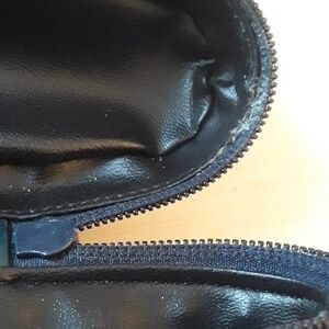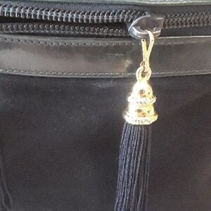 Stuart Weitzman Deep Navy Suede & Leather Crossbody Bag Beautiful Stuart Weitzman crossbody crafted in deep navy suede (almost black) with smooth leather trim. Features a unique cylindrical silhouette, gold‑tone hardware, and double tassel zipper pulls for a luxe touch. The adjustable strap makes it perfect for everyday wear or evenings out. Condition: Gently used and professionally repaired. The zipper area has a small section where the repair left some glue residue, and the zipper can stick slightly at that spot. It still opens and closes — just requires a gentle hand. Priced accordingly. Details: 8x7x3 21.5 Drop Material: Suede + leather Color: Navy with gold hardware Closure: Top zipper with tassel pulls Strap: Adjustable crossbody Interior: Clean Brand: Stuart Weitzman A rare and stylish designer piece with beautiful texture and detailing. #SuedeBag #Crossbody #DesignerHandbag #Quiet Luxury #NavyBag #StuartWeitzman #MinimalistStyle