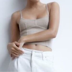 🤍 Zara Bandage Knit Corset Top - Beige - Size XS - New with Tags