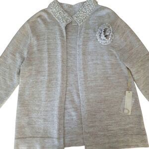 NWT A Giannetti Embellished Pearl & Sequin Collar Open Front Cardigan Size Small
