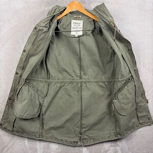 ONLY Jacket Women Size S Military Green Hooded Zipper Utility Casual Streetwear
