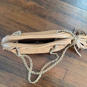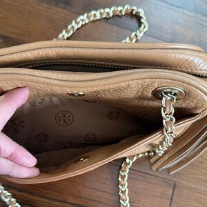 Tory Burch Thea Royal Tan Crossbody Bag with Gold Chain