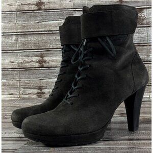 Paul Green Suede lace Ankle strap Heel Boots sz 6 color Black made Austria