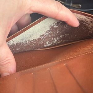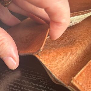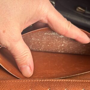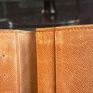 Louis Vuitton wallet has prior peeling in all three bill compartments