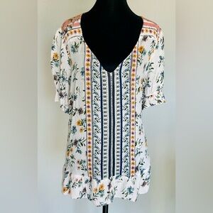 Lucky Brand Boho Eyelet Floral Blouse Cottagecore Fairycore Peasant Top 1X J1265