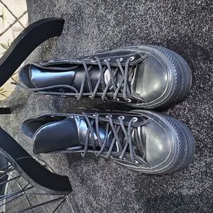 Step up your style with these sleek converse black high-top sneakers. Perfect for any casual outing. size 7.