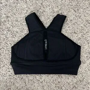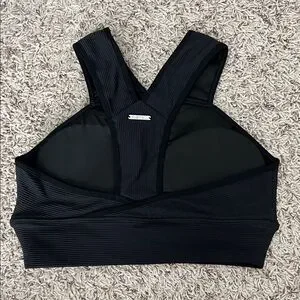 Black sports bra. Ribbed material. Keyhole detail in front. Pads included. Hardly worn.
