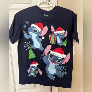 Disney Black Tee with Stitch Christmas Design