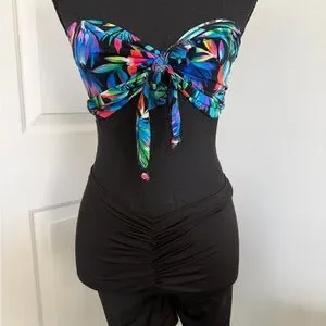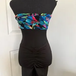 BODEGA BADDIE strapless top with a tie front. Features a colorful tropical pattern. Scrunch booty biker shorts set fits medium/large brand new too small- PERFECT FOR VACATION THIS YEAR