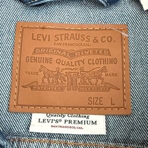 Levi's denim jacket featuring 'Good Nature' embroidery.