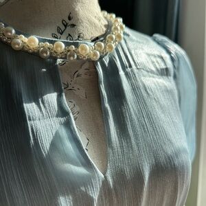 NWT D-PLAY Light Blue Pleated Midi Dress | Pearl Neckline | Size M