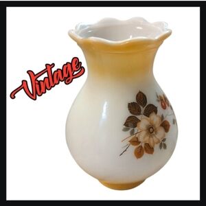 Vintage Milk Glass Hurricane Lamp Shade Ombre | Floral Amber | Romantic Cottage