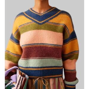 NEW ALEMAIS dusk v-neck knit sweater in stripe