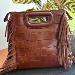 Maje Chocolate Croc-Embossed Fringe Mini Bag