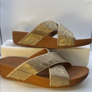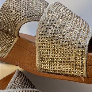 Fitflop Gold Rhinestones Crisscross Sandals-Size 9-Comfy-Slip on-Casual