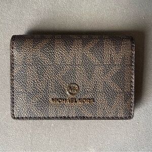 Stylish card holder with signature pattern. Compact and sleek design. Perfect for everyday use. No flaws, no stains, no scratches on the logo.