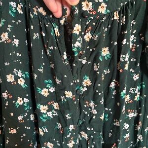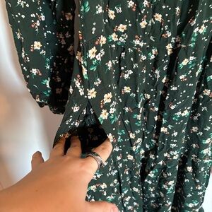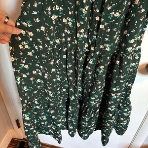 Old navy green floral medium long floral tiered maxi dress with button closure in front and has pockets