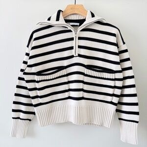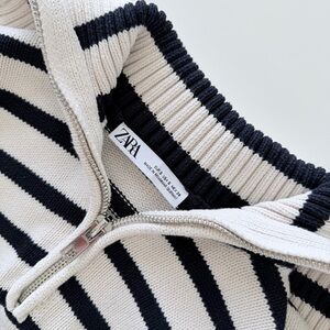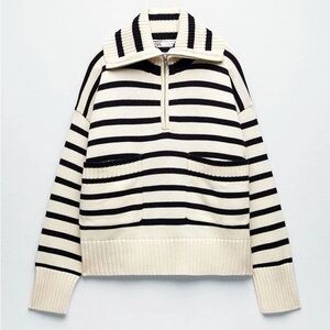 Cozy striped knit sweater by ZARA with half-zip neckline and relaxed cropped fit.