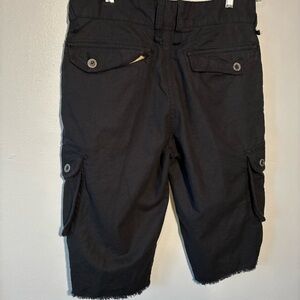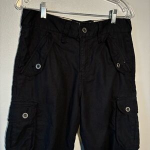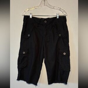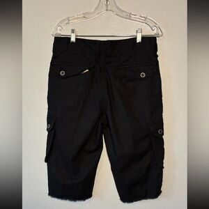 Y2K Guess Women's Pants Size30 Black Cargo Pockets Cropped High Rise Linen Blend