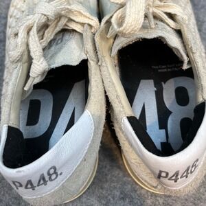 Elevate your everyday style with these chic P448 sneakers. Crafted from soft beige suede, these fashion sneakers feature a unique woven detail on the side panel, adding a touch of artisanal charm to your look. The classic lace-up design ensures a secure and comfortable fit, while the durable sole provides reliable support for all-day wear. Perfect for running errands, meeting friends for brunch, or a casual day out exploring the city.