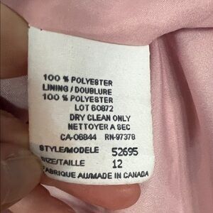 Chic blush pantsuit with tailored blazer and sleek trousers. Perfect for office wear. Size 12 blazer with size 10 pant. Gorgeous made in Canada set! Perfect for spring!