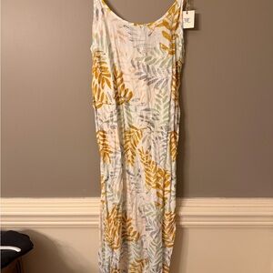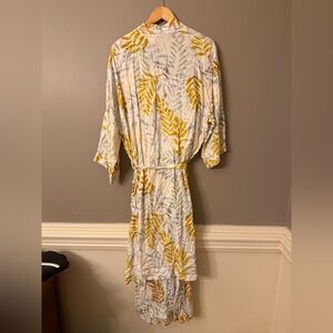 Floral flowy pajama midi dress and robe with yellow and gray leaves perfect for lounging. 100% Rayon. New with tags.