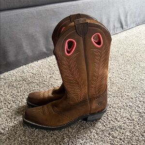 Ariat Brown Leather Heeled Boots with pink Highlights