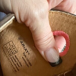 Elegant Ariat boots crafted from premium brown leather. Features intricate stitching and red cutout accents. Stylish and durable for any occasion.