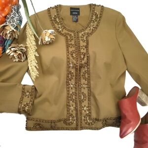 Doncaster Collection Beaded Embellished Tan Blazer Jacket Sz 14