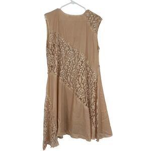 Keywords: Pretty Angel, vest dress, beige, lace overlay, linen blend, polyester blend, women, XL, bohemian, feminine, lightweight, summer dress, casual