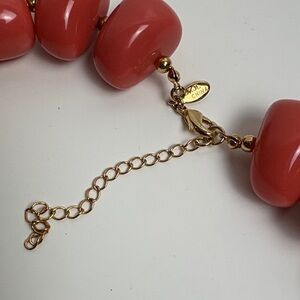 Kenneth Jay Lane chunky Lucite coral bead necklace. The necklace measures 19 1/2” with a 3 inch extender, adjustable