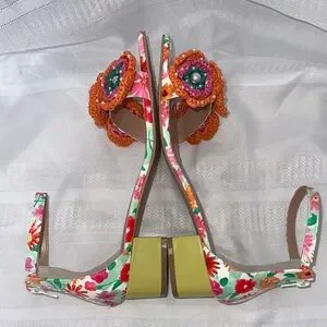 Betsey Johnson Brandee sandals. Step into style with these vibrant floral sandals. Featuring eye-catching orange, green and pink crochet flowers. These shoes are perfect for adding a pop of color to any outfit. Very good condition! Nice shoes! Size 10. Still have tag on with $99 tag.