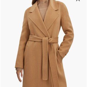 Sleek and sophisticated, this longline beltec coat is made from a double-faced, splittable wool blend for a supremely soft interior that matches the exterior. Due to this unique dua construction. blind-seam coats remain warm and comfortable without needing a lining