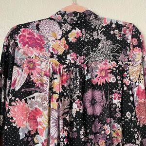 Anthropologie Maeve Top Womens Medium Black Pink Floral Button Up Tunic Boho