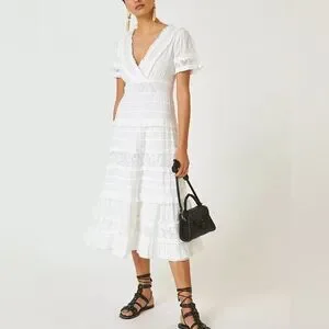 Love the Label Cotton Eggshell White Ruffle Tier Midi Dress Size Small. Super cute! No rips, stains, or tears. Made in India. Needs a bit of ironing to look fresh again :) Enjoy!