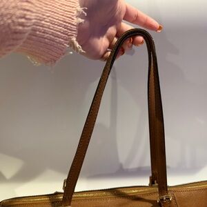 Elegant brown tote with gold-tone hardware. Perfect for daily use.