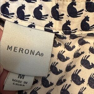 Merona Women’s Size Medium Black Chickens On Cream Patterned 100% Cotton Top