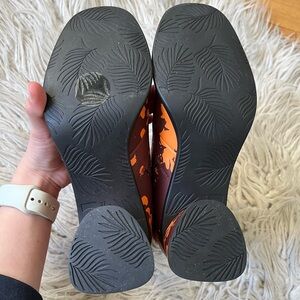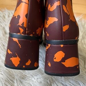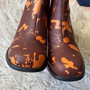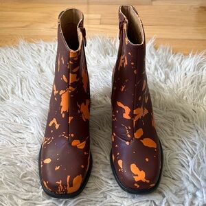 Camper Kiara Orange Brown Paint Splatter Leather Heeled Ankle Boots EUC Size 37