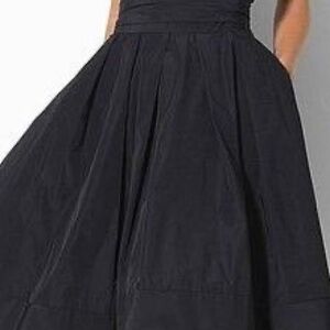• Concealed center back zip with hook-and-eye closure at the skirt